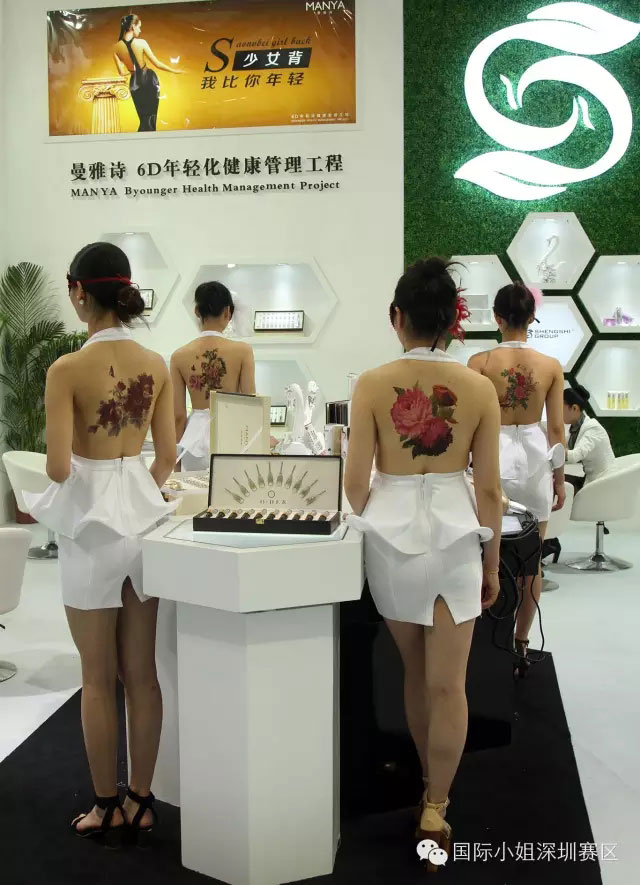 并有第56屆國際小姐佳麗蒞臨助陣,現(xiàn)場靚麗魅影,婀娜多姿,古典的中國美,潮流的國際美,藝術(shù)的性感美,盡在身著“靚麗露背裝”的國際小姐身上展現(xiàn)的淋漓盡致。在她們美麗的背上,彩繪著代表青春與美麗的花朵,彰顯著“曼雅詩·少女背”所深藏的魅力。